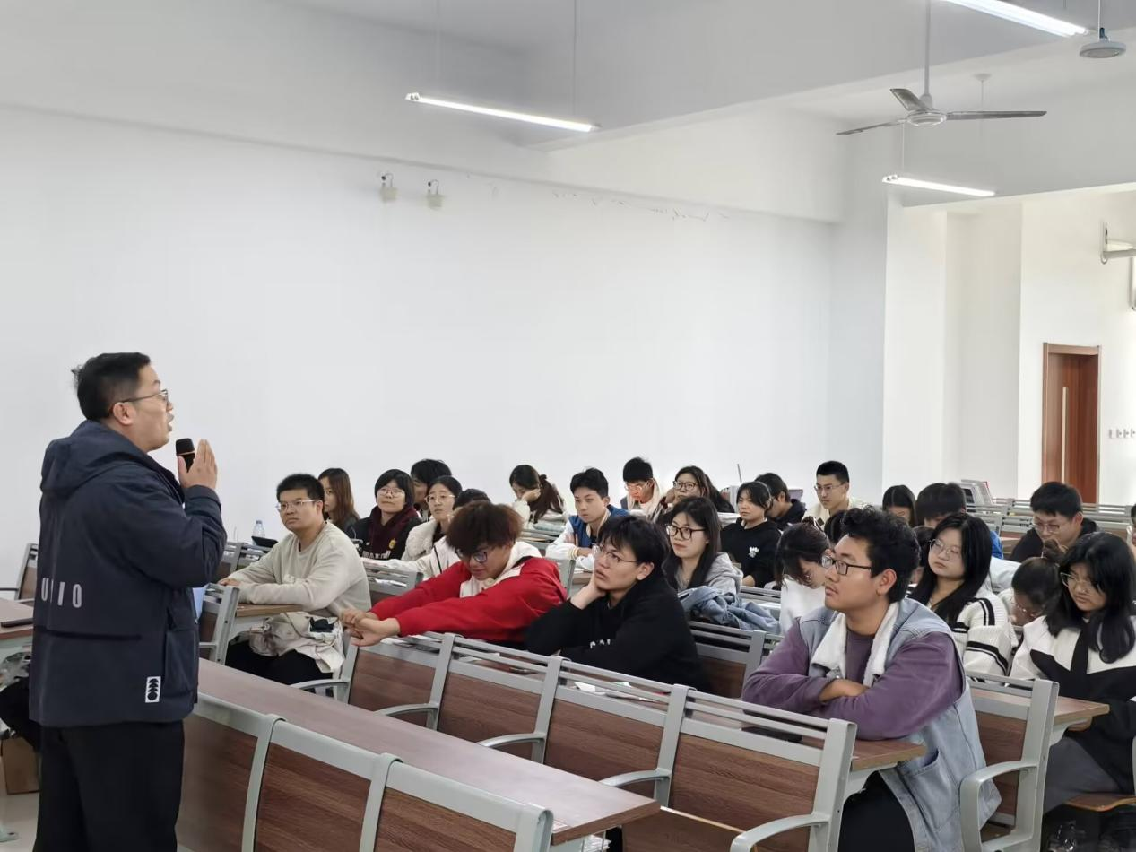 11 月 11 日Beat365中文官方网站在增信楼516举办优秀校友专题报告会,邀请优秀校友李泰禹返校做报告,2025届毕业生参加。