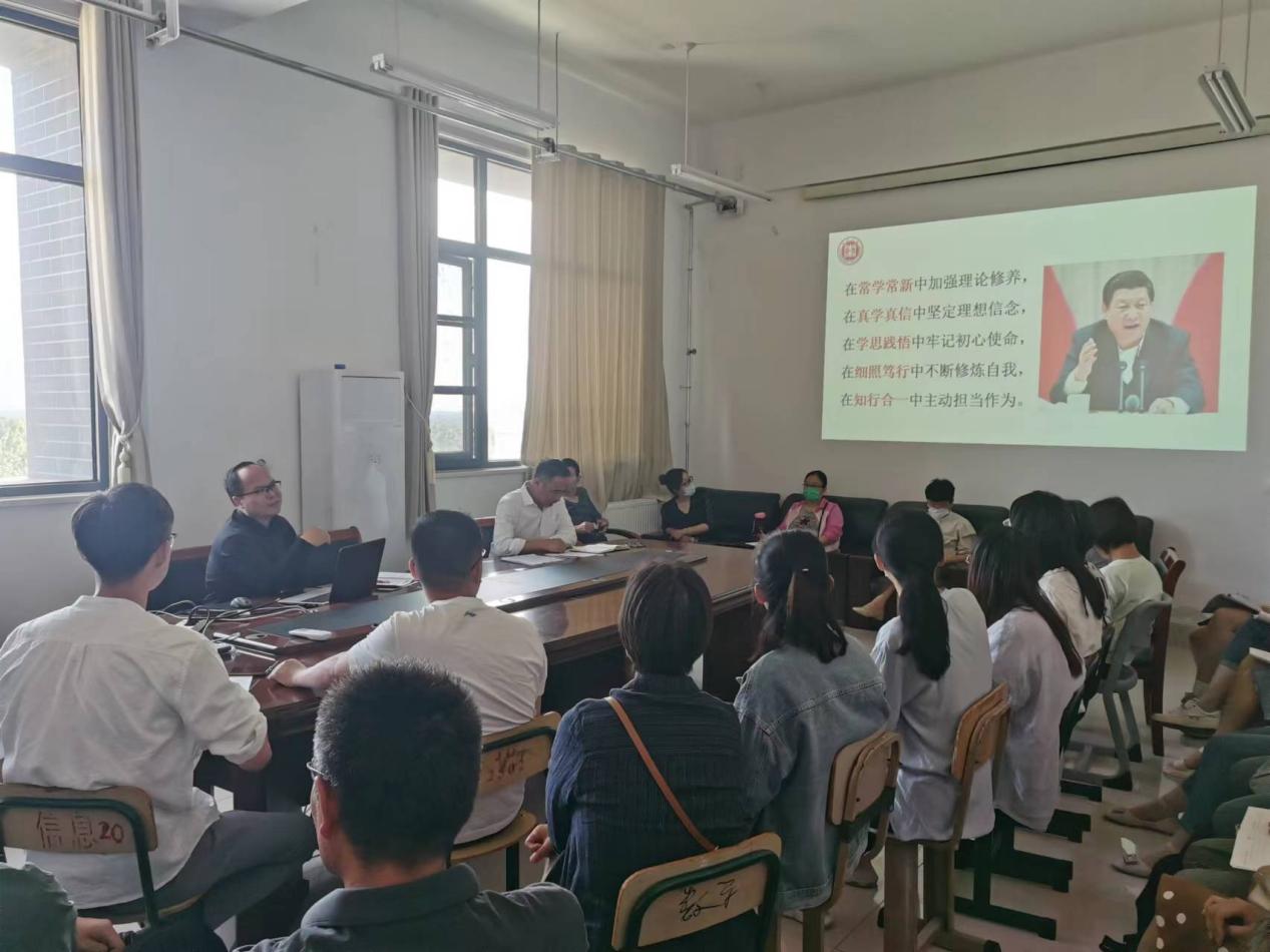 为深入开展学习贯彻习近平新时代中国特色社会主义思想主题教育,5月24日下午,Beat365中文官方网站党总支书记王海峰以《马克思主义中国化时代化——深入学习习近平新时代中国特色社会主义思想》为题给全体教职工讲授主题教育专题党课,Beat365中文官方网站全体教职工参加此次党课学习。