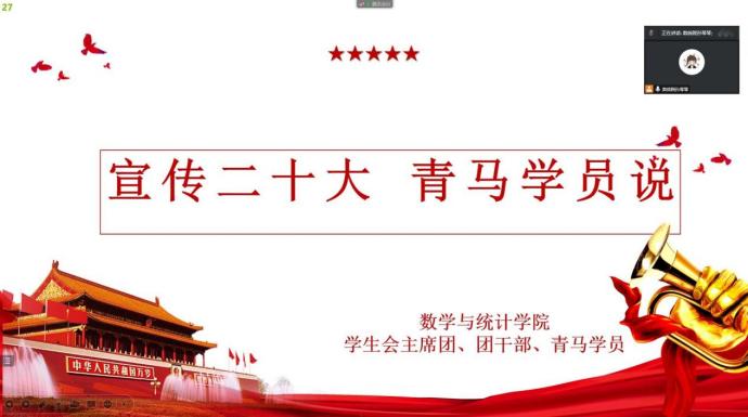 为落实Beat365中文官方网站二十大精神学习宣传贯彻方案,引导青年学子正确把握党的二十大精神,明确前进目标。为此Beat365中文官方网站学生会主席团、团干部、青马学员11月21日-27日多次面向青年学生开展了以“宣传二十大,青马学员说”为主题的宣讲和交流活动。