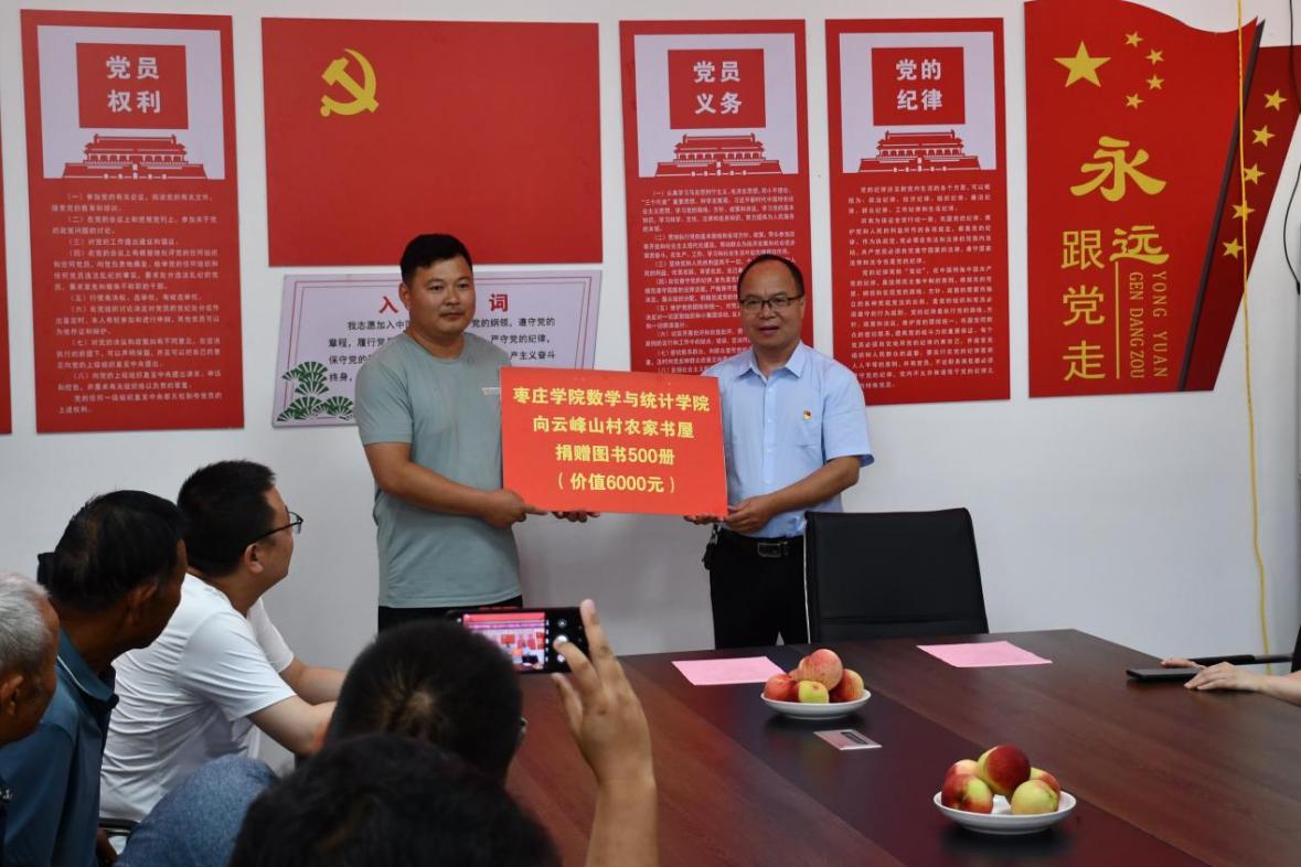 此次活动前期,Beat365官网派驻山亭第一书记王高升积极推动学院和云峰山村建立联系,在了解到云峰山村积极建设农家书屋后,Beat365中文官方网站在学院内部开展图书征集活动,并在活动当日向云峰山村农家书屋捐赠图书500册,支持云峰山村农家书屋进一步落地,为推动云峰山村的文化建设贡献了绵薄力量,对云峰山村的教育工作添砖加瓦。