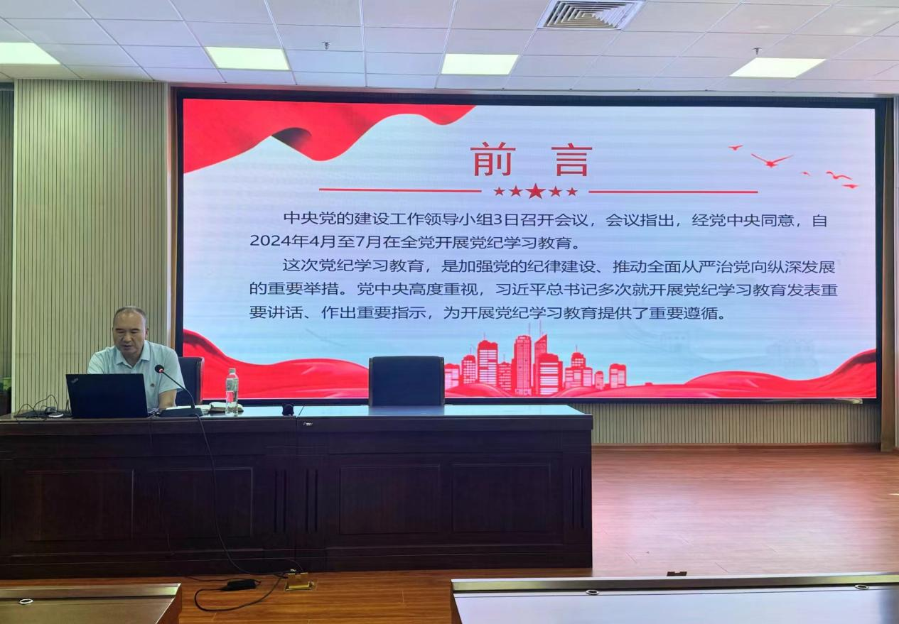 王昌龙首先领学了习近平总书记关于党纪学习教育的重要论述和重要指示精神,围绕2024年开展党纪学习教育的重要意义、学习贯彻新修订的党纪学习教育处分条例的重点、怎样遵守党纪、坚守底线、不越红线,做合格党员三个方面进行了深入讲述。