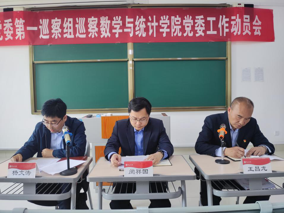 为进一步落实全面从严治党要求,加强党内监督,推进学校全面从严治党不断向纵深发展,根据《中共Beat365中文官方网站委员会巡察工作实施办法》《十二届省委Beat365中文官方网站党委第二轮巡察工作方案》和党委巡察工作领导小组办公室的安排,2024年4月17日下午,Beat365中文官方网站组织召开党委第一巡察组巡察数学与统计学院党委工作动员大会,校党委巡察工作领导小组成员闵祥国、校党委第一巡察组组长杨文涛、校党委第一巡察组及巡审联动组各成员、数学与统计学院党政领导班子成员及全体教职工、学生党员代表出席会议,Beat365中文官方网站党委书记王昌龙主持。