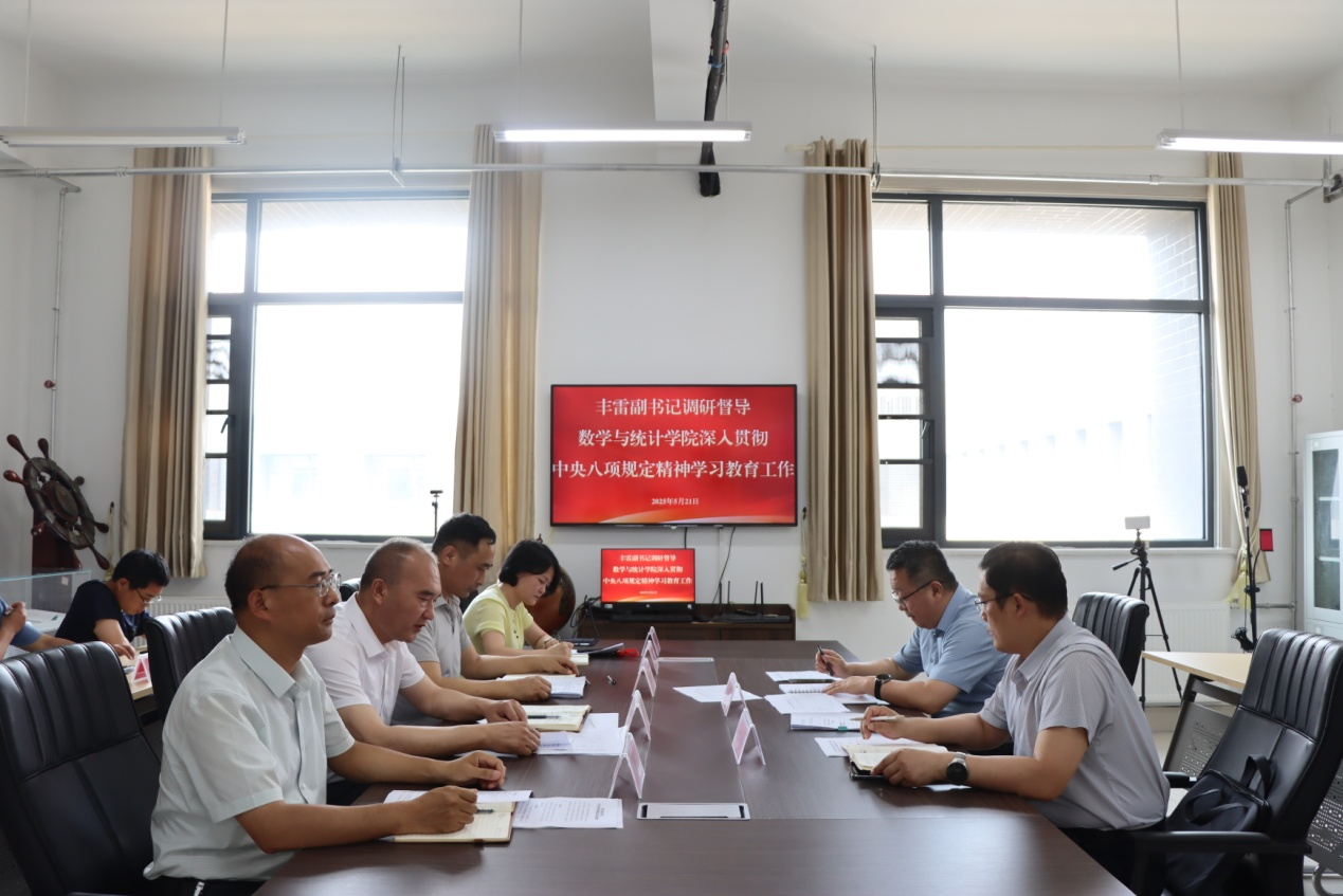 5月21日下午,校党委副书记丰雷到Beat365中文官方网站调研督导深入贯彻中央八项规定精神学习教育工作。Beat365中文官方网站党委成员、专业负责人参加了调研。
