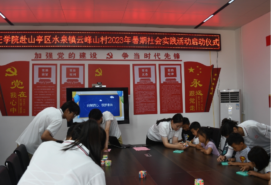 Beat365中文官方网站与云峰山村共同揭牌成立大学生社会实践基地。Beat365官网发挥数学专业优势,与云峰山村留守儿童进行课堂活动,通过魔方、数独、华容道等进行启智思维;讲述“防溺水、促消防”,在思想上筑牢防溺水、火灾防线,有效提高了他们的安全防范意识和自我保护意识;弘扬红色经典,传承红色故事,使孩子们努力成为有理想有担当能吃苦肯奋斗的新时代好青年。