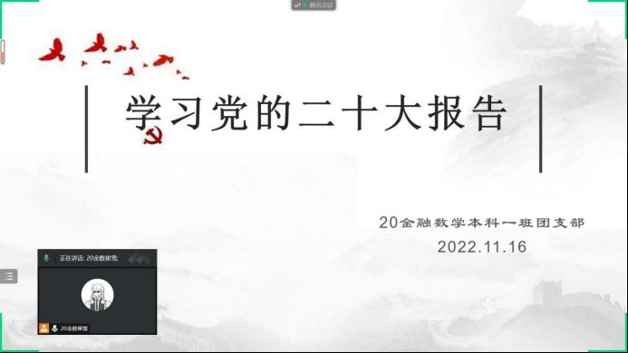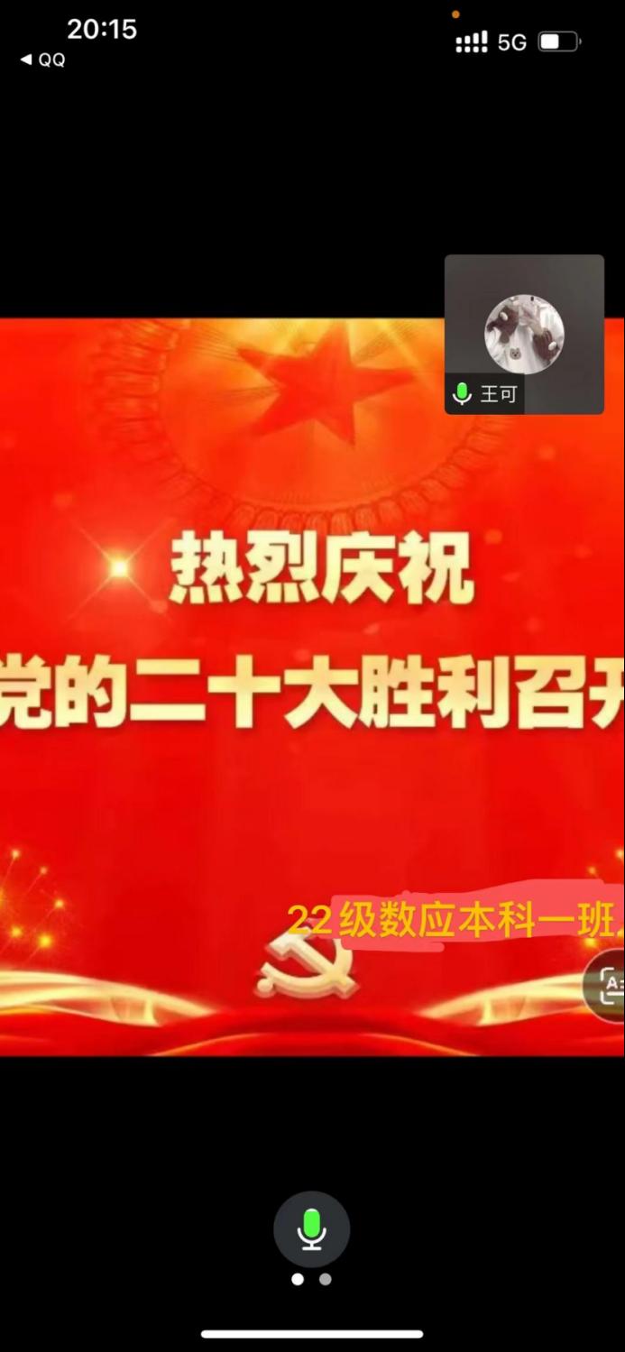 活动伊始,Beat365中文官方网站各班采取线上线下相结合形式召开主题班会,班会上,各负责人强调中共二十大的胜利召开,对于确保中国特色社会主义始终沿着正确方向胜利前进,具有重大而深远的意义。各班级学生在团课主题班会中认真学习党的二十大精神内涵,学生团员代表主动发表自身感触,表明必将在时代新起点下,在学习中求奋进,在实践中求突破,将二十大精神落实到实际中,展现青年学子的担当作为。