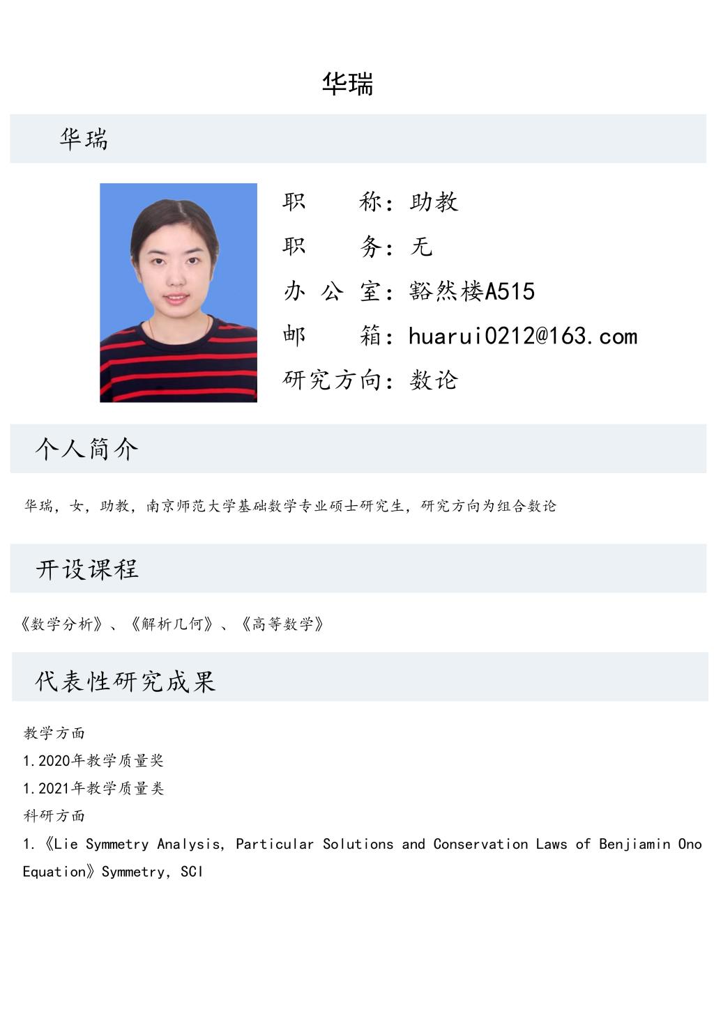 华瑞老师个人简介