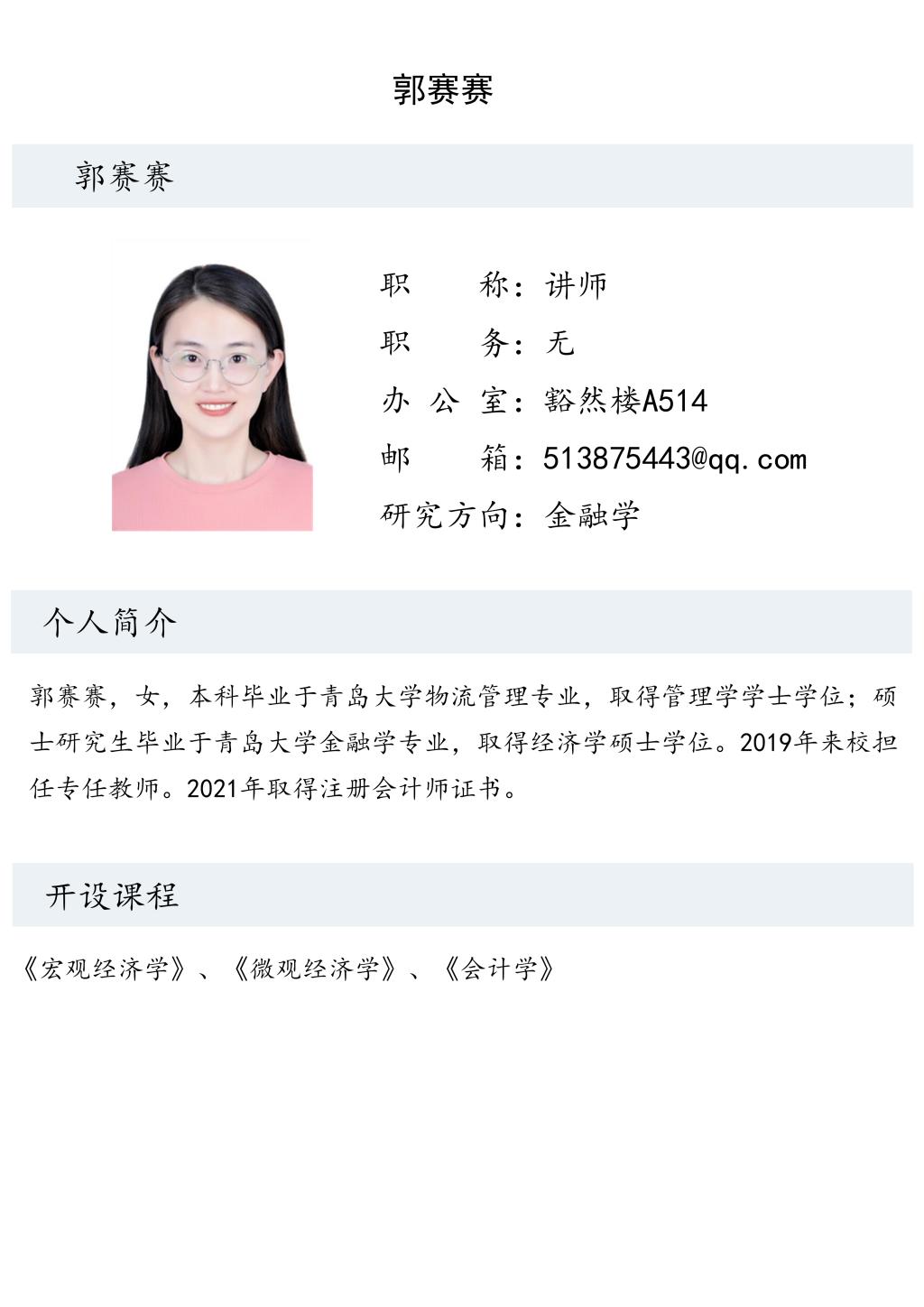 郭赛赛老师个人简介