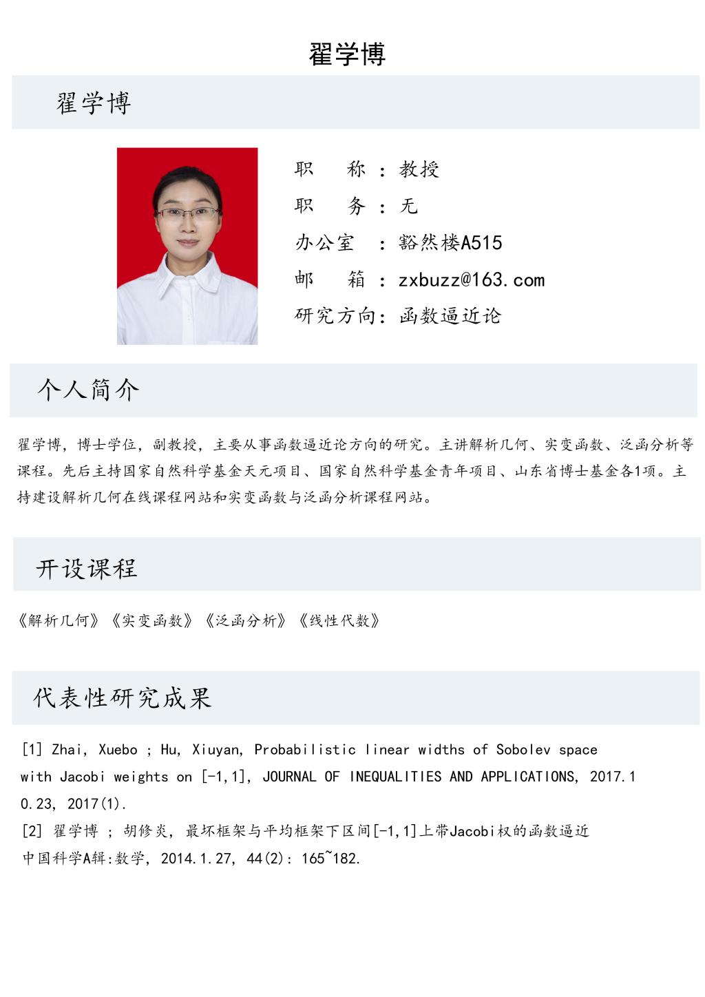 翟学博老师个人简介