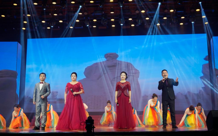 从矿井深处到课堂广阔,从实验室到国际舞台,相声《美丽薛城一家亲》叙述出薛城的昨天与今朝;小品《家的味道》让暖意绵绵在舞台上绽放,传递着薛城一家亲的温馨和欢乐;从一座小站兴起,如今她风光万象,诗朗诵《早安薛城》讲述着薛城的成就与梦想;一曲气势磅礴、激情澎湃的电声乐合奏《矿山•情》带领观众从百里煤海出发,感受在这片红色热土上,百年枣矿传承的红色基因。
