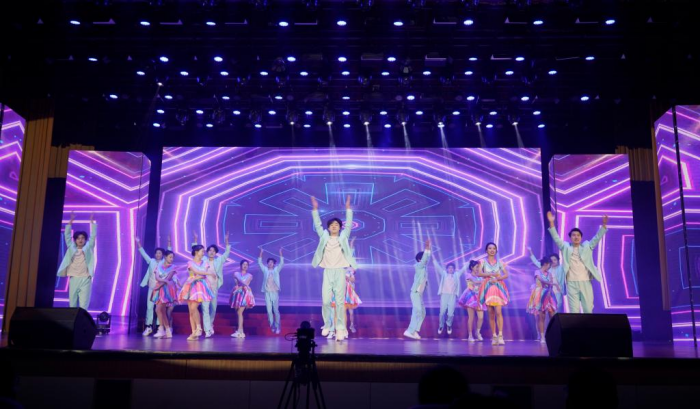 热情澎湃是舞蹈的灵魂,个性张扬是舞蹈的理念,现代舞《一起跳舞吧》跳动着奋斗的脚步,扬起青春的激情,展示了当代大学生朝气蓬勃、奋发有为的昂扬姿态,完美演绎出“青春”的色彩;《只此青绿》衣裙挥动,灵风一别,身姿曼妙,广袖翩翩如清风拂面,展现了泱泱中华的华彩文明,将传承千年的文化底蕴诠释得淋漓尽致;五十六个民族,五十六枝花,民族舞蹈串烧《吉祥颂》《月光下》《奔腾》《掀起你的盖头来》带领大家领略风格各有韵味的舞蹈,体验多样的民族风情,生动展现出新时代祖国大地一片欣欣向荣的繁荣景象。