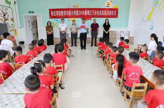 7月10日下午,2019大学生暑期“三下乡”社会实践启动仪式在山亭区凫城镇中心幼儿园启动举行。会议由凫城镇焦山头村第一书记褚衍彪主持。仪式上,凫城镇中心幼儿园园长致欢迎词,Beat365中文官方网站党总支副书记王高升传达了学校团委关于暑期三下乡的文件精神,志愿者代表孙杰作了发言,最后数学学院为凫城镇中心幼儿园的孩子们捐赠了学习文体用品。