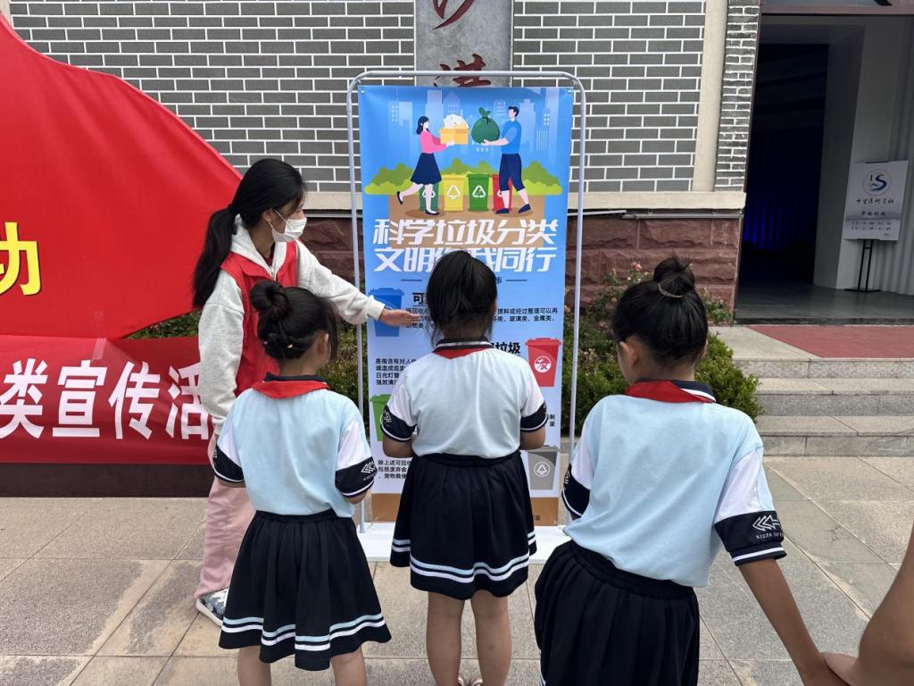 活动中,大学生环保志愿者服务团队走进薛城区沙沟镇十里湾研习社,结合“世界环境日”开展环保知识宣传及实践活动,大学生带领小学生一起参观了十里湾生态环境公园,向小学生宣传保护环境、建设生态文明的重要意义,教给小学生怎样进行垃圾分类,增强小学生的保护环境的意识。大学生志愿者和小学生们一起清理社区垃圾,并将小学生捡到的可回收垃圾兑换成学习用具,激发孩子们保护环境的热情和积极性。