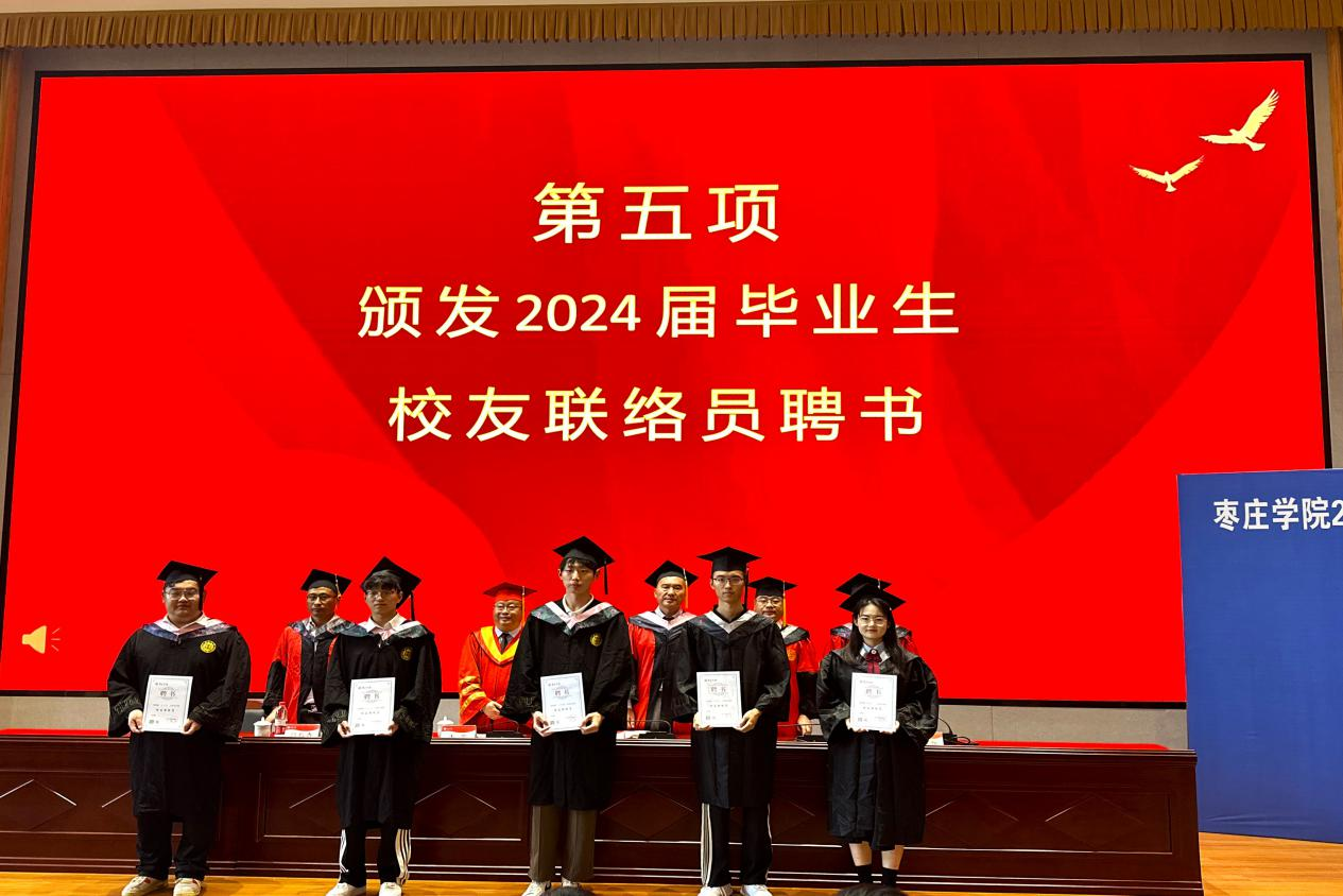 主席台领导为2024届毕业生校友联络员颁发聘书。