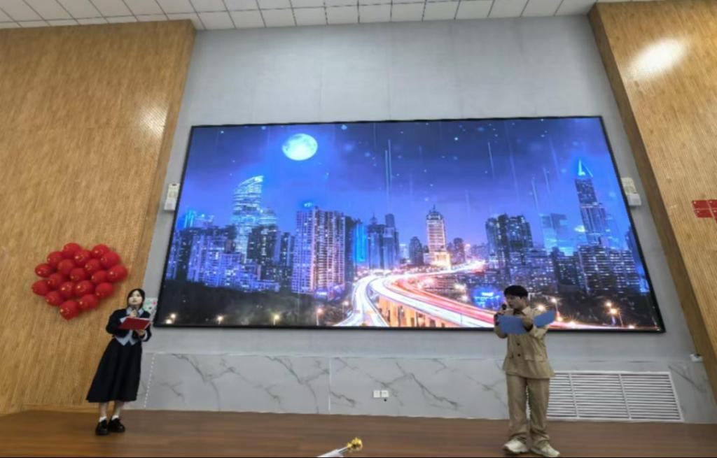 比赛现场,各参赛选手紧扣主题,伴随着婉转悠扬的背景音乐,以饱满的热情、真挚的感情投入比赛。传媒学院作品“跨越时空的对话”巧妙地构建了跨时空的对话场景,连接不同时代的人物和精神,引发观众对新中国变革的思考;心理与教育科学学院作品全方位地展现了红色历史的厚重与伟大,激起观众对英雄的敬仰和对红色传统的传承之情。选手们用真挚的情感、精彩的朗诵引领广大师生感受到红色诗歌的魅力,更为观众带来了一场心灵的洗礼。