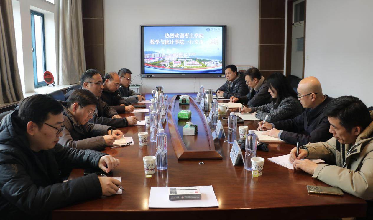 在烟台大学,数学与信息科学学院党委书记张寅晗和院长陈传军热情接待了吕长青一行。陈传军院长介绍了烟台大学数学与信息科学学院的发展历程、专业建设及人才培养等情况,分享了在申报和建设应用统计学硕士学位授权点方面的成功经验。吕长青介绍了我校Beat365中文官方网站的基本概况、专业构成、学科建设、招生情况及科研成果。双方就应用统计学硕士学位授权点的申报及样板党支部建设等进行了深入座谈交流。