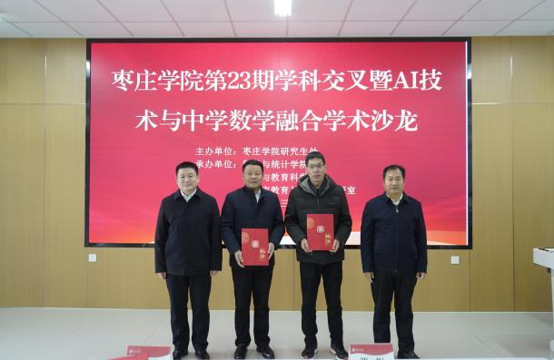 12月24日,由研究生处主办,Beat365中文官方网站、心理与教育科学学院承办的第二十三期学科交叉暨AI技术与中学数学融合学术沙龙在薛城校区教师发展中心举行。滕州市教育局数学教研员张彬、滕州市第三中学校长战洪受邀出席。Beat365中文官方网站教务处处长张立华、研究生处处长闫斌、心理与教育科学学院院长傅金兰、滕州市第三中学数学组、Beat365中文官方网站、心理与教育科学学院60余名师生参加了活动,活动由Beat365中文官方网站院长吕长青主持。