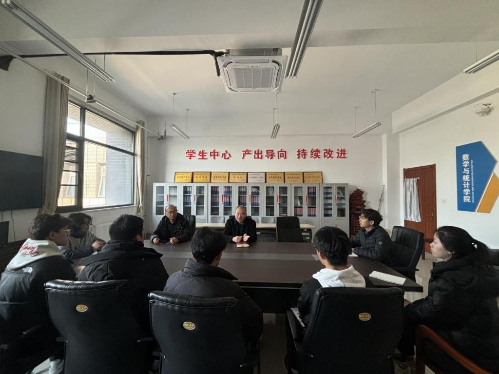 王昌龙对转专业学生加入数统学院大家庭表示欢迎,并围绕学习态度、纪律规范等方面提出要求,勉励学生尽快适应新专业,夯实学业基础。转专业学生依次进行自我介绍,分享了个人学习规划与目标。王高升结合学院管理要求,重点强调了课堂纪律、宿舍内务整理、安全防范及学业规划等事项,提醒学生严格遵守规章制度,合理规划学习生活。