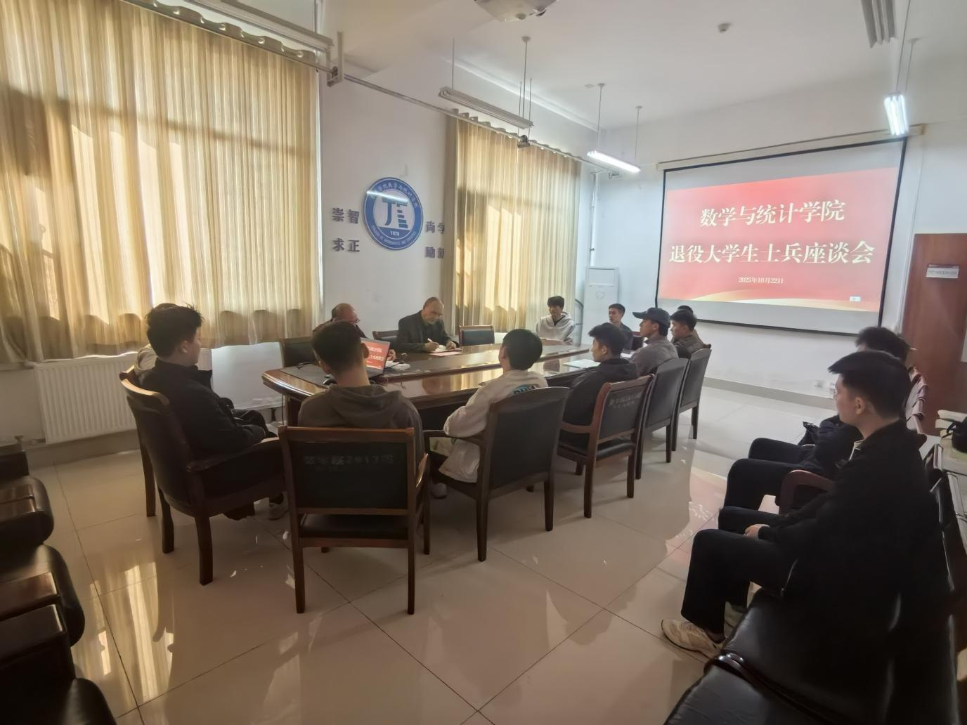 10月22日,Beat365中文官方网站在豁然楼A510会议室举行退役大学生士兵座谈会,24级、25级共12名退役复学学生参会,学院领导出席。