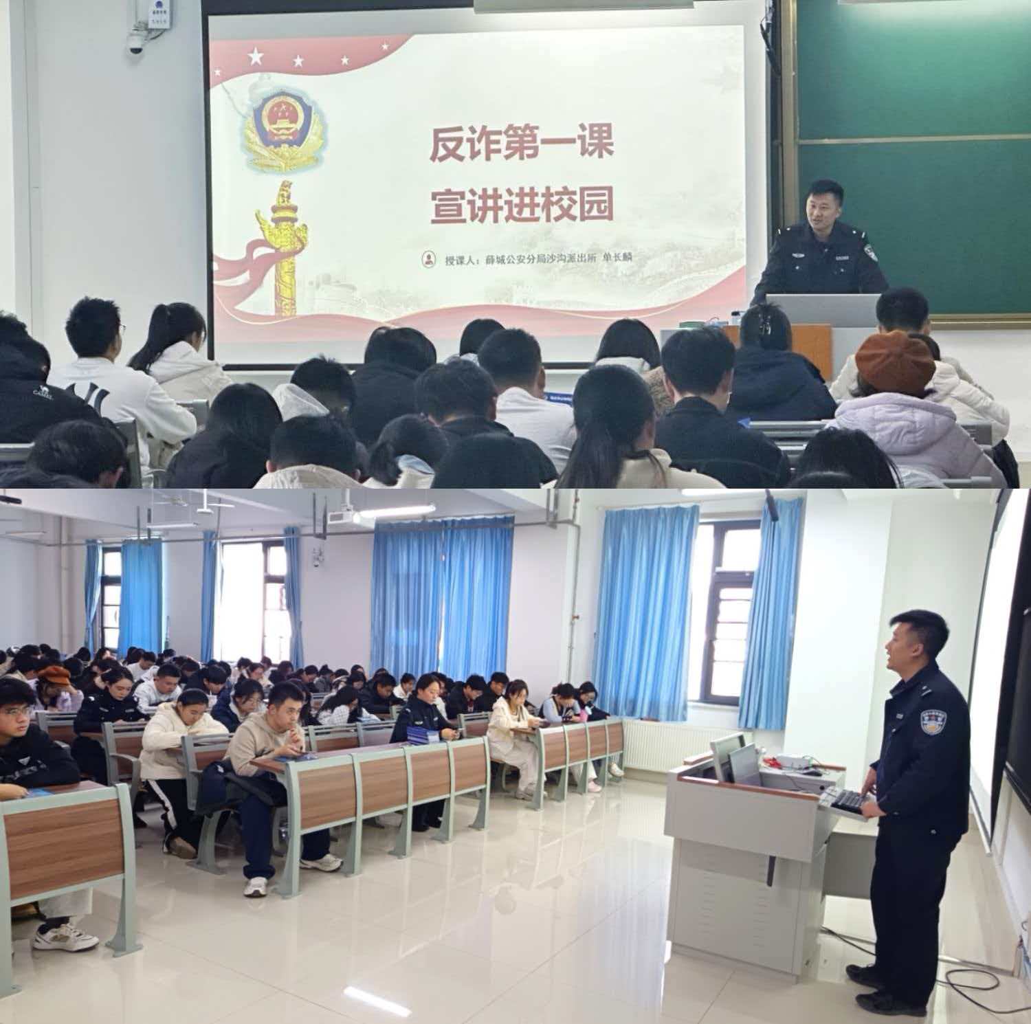 沙沟派出所民警单长麟警官聚焦刷单返利、冒充身份、“两卡” 犯罪等校园高发诈骗类型,结合真实案例拆解作案套路,重点提醒“低门槛、高收益”信息多为诈骗诱饵,提醒同学们切勿泄露个人信息或随意转账。宣讲过程中,同学们专注聆听、边听边记,受到了一次高品质的反诈骗专题教育。