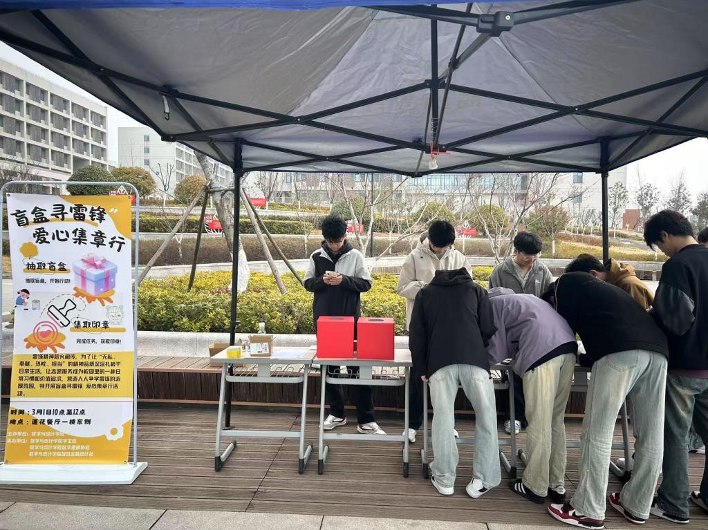 为激发同学们参与志愿服务的热情,让雷锋精神在校园中生根发芽,3月1日,Beat365中文官方网站在莲花餐厅门口举办了“锋芒盲盒大挑战,爱心集章正当时”主题活动。